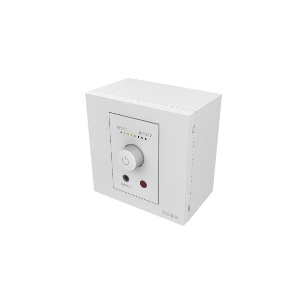 Amplificador estéreo Techconnect V3 de VISION con 2 x 25 W (RMS a 8 ohmios). Es un amplificador digital de baja impedancia, 2 entradas de nivel de línea estéreo (la entrada 1 está duplicada en el panel delantero y trasero). Incluye mando a distancia por infrarrojos. Receptor de infrarrojos duplicado en los paneles delantero y trasero para su utilización con sistemas de control. Al encenderse, puede recuperar el último volumen utilizado, o bien ponerse siempre en marcha con un nivel predefinido. Cables incluidos: 2 cables de entrada de 150 mm, 2 cables de altavoz de 5 m. Incluye marco y caja trasera. Importante: el módulo amplificador sólo es compatible con la serie TC3 Techconnect, no pudiendo ser instalado en cajas y tapas de la serie TC2.