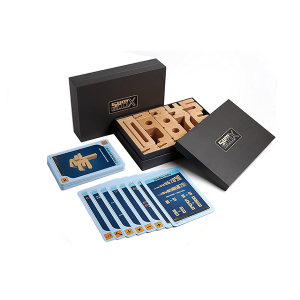 Dispone de 1 Cohete, 40 pinchos de combustible, 18 tarjetas reto, 40 tarjetas número, 1 dado, 1 bolsa de tela y 1 guía didáctica.