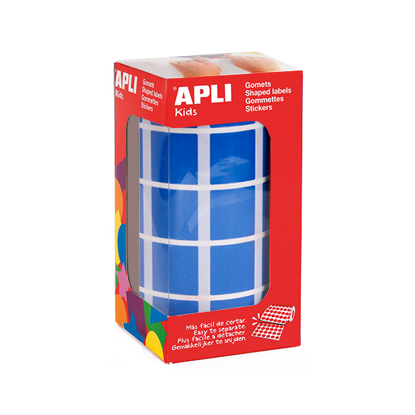 Rollo gomets Apli cuadrados grande 20 mm. Blanco